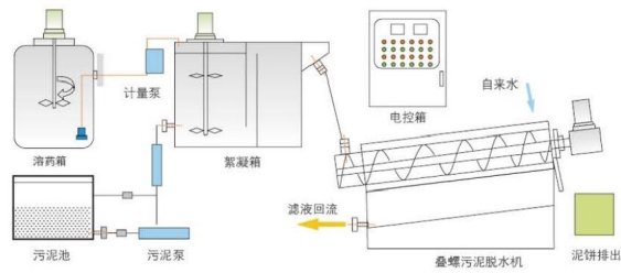 疊螺污泥脫水機工藝流程圖